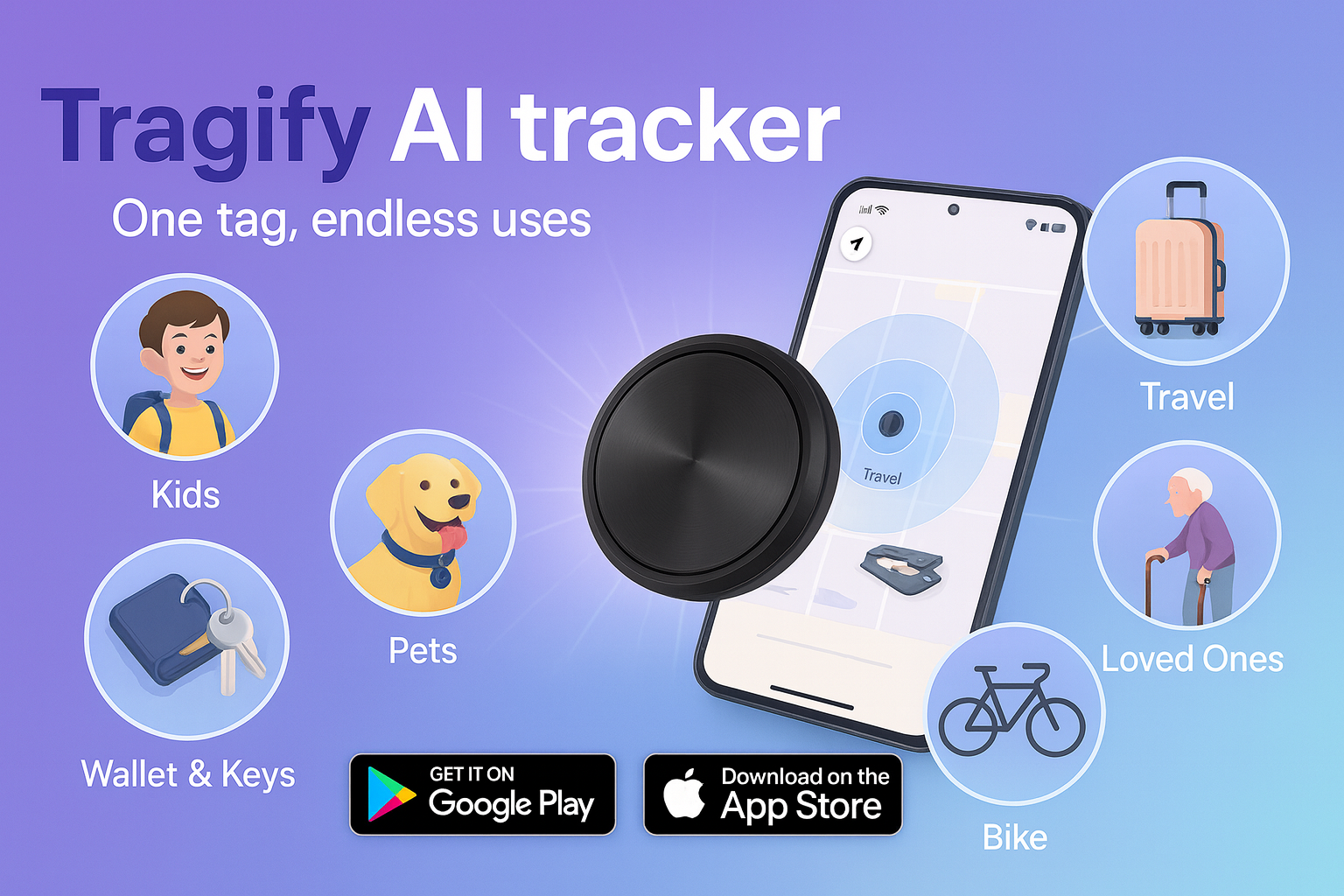 Keep your valuables safe and close wherever you go. With real-time tracking, AI-powered alerts, a battery that lasts over a year, and a lightweight yet shockproof design, the Tragify AI Tracker delivers peace of mind—whether you’re at home or on the road.